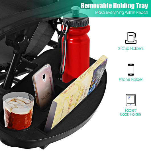 Specifications: Color Brown/Black/Green/Navy/Beige/Gray/Light Blue/Dark Red Material Steel Fabric Sponge Dimension of Unfolding 40"-57" x 25" x 34"-42.5"(L x W x H) Dimension of Folding 25" x 5" x 35"(L x W x H) Dimension of Tray 15" x 9.5" x 2.5"(L x W x H) Dimension of Pillow 14" x 6.5" x 2"(L x W x T) Net Weight of Each Chair 15.5 lbs Weight Capacity of Each Chair 310 lbs Package Includes: 2 x Chairs 2 x Headrests 2 x Trays