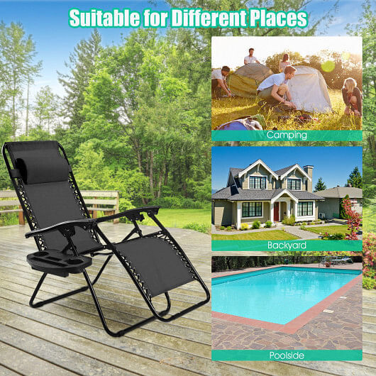 2 Pieces Folding Recliner Zero Gravity Lounge Chair - Black - Color: Black