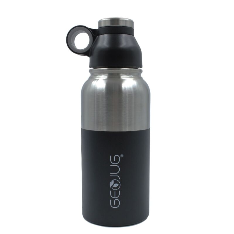 Use the Brentwood GeoJug 40oz Stainless Steel Vacuum Insulated Water Bottle to keep your favorite beverages hot up to 10 hours and cold up to 24 hours with no condensation. Always enjoy the pure taste of your drink thanks to tasteless and odorless 18/8 pro grade stainless steel construction. An extra wide mouth for quick filling and easy cleaning. Thin and durable powder coat finish insures a slip free grip. Includes a uniquely designed flip and sip cap with built-in carry handle. Take the cap off and flip it over to use it as a small cup. Stand out with our exclusive 2 tone Black and brushed stainless steel finished insulated water bottle.