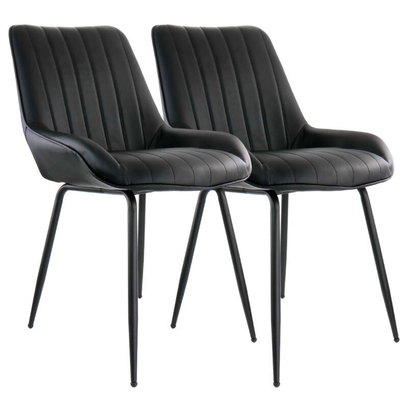Elama 2 Piece Faux Leather Tufted Chair in Black with Black Metal Legs