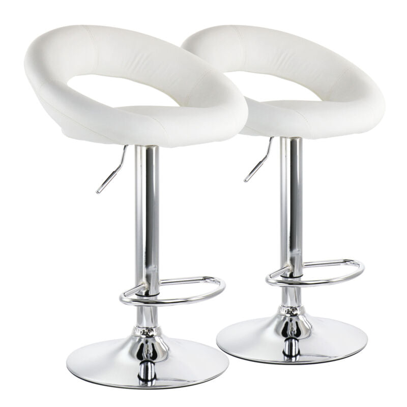 Elama 2 Piece Retro Adjustable Faux Leather Bar Stool in White with Chrome Base