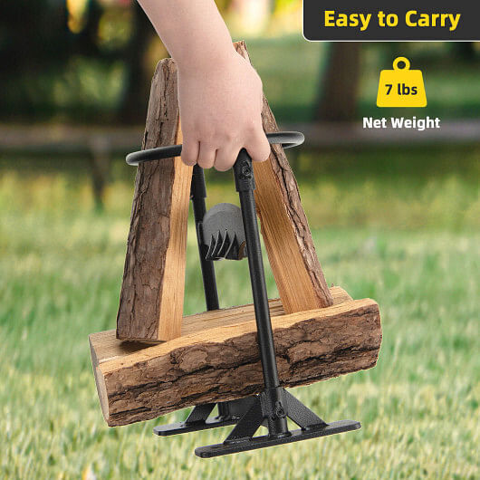Specifications: Color: Black Material: High-carbon steel Overall dimension: 8.5" x 7" x 12.5" (L x W x H) Inside diameter of top ring: 6.5" Maximum recommended log size: 6" x 16" (Dia x H) Net Weight: 7 lbs Package includes: 1 x Firewood splitter 1 x Instruction Placing the wood in the top ring and then striking it with a hammer or other tools you can easily split logs into pieces of firewood you need with less energy by this firewood splitter. In addition the top ring helps to avoid the risk of being cut by the blade when you strike the wood. As to the balance the sturdy base ensures stability when you use it. You can also fix this wood cutter somewhere for extra stability. What's more featuring premium high-carbon steel with an anti-rust spray surface this kindling wood splitter is durable in daily use. For outdoor use this small and light firewood splitter allows you to carry it conveniently. When you don't use it you can easily store it in any corner of your house. If you are looking for a firewood splitter like this do not hesitate to place an order!