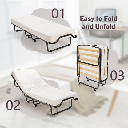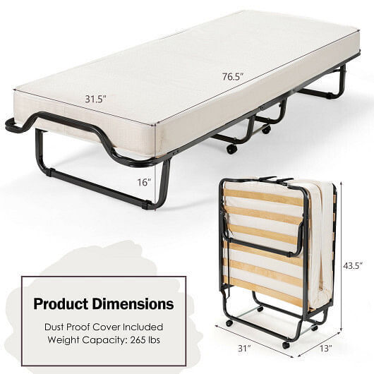 Rollaway Folding Bed with Memory Foam Mattress and Dust-Proof Bag Made in Italy