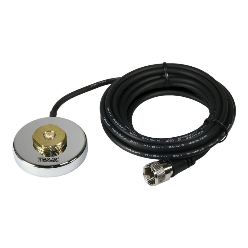 Tram 1229-UHF UHF Strong 2-1/2-In. NMO Magnet Mount for High Frequencies, 12-Ft. Cable with PL-259 Connector (Chrome Plated)