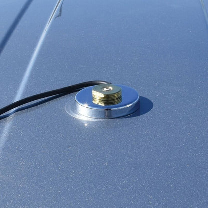 • Extra-strong 2-1/2-in. magnet for high-frequency antennas;• Steel magnet housing;• Gold-plated contact pin for high frequencies;• Solid brass NMO mount with fully enclosed, fully shielded, high-frequency gold-plated solid-brass housing;• 12 ft. RG-58/U low-loss precision communication RF coax, bare copper braid 95%, solid insulation, and solid bare copper center conductor;• Preinstalled precision PL-259 UHF male connector ;• Chrome plated;