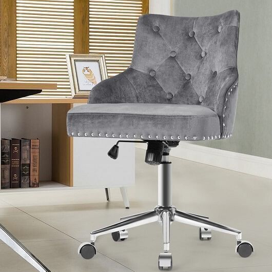 Tufted Upholstered Swivel Computer Desk Chair with Nailed Tri-Gray - Color: Gray