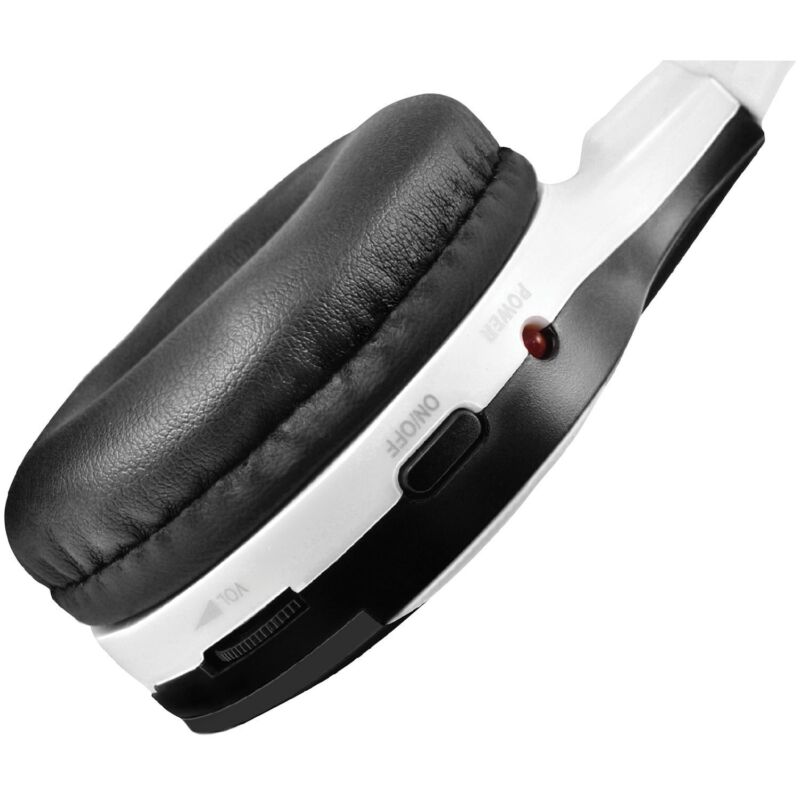 • Compatible with IR transmitters for wireless audio playback ;• On/off switch and volume control ;• Extra foam cushioning and adjustable headband for comfortable fit;• Fits any size head, even children ;• Foldable earcup design provides convenient storage options ;• Auto shutoff conserves battery life;• Black;